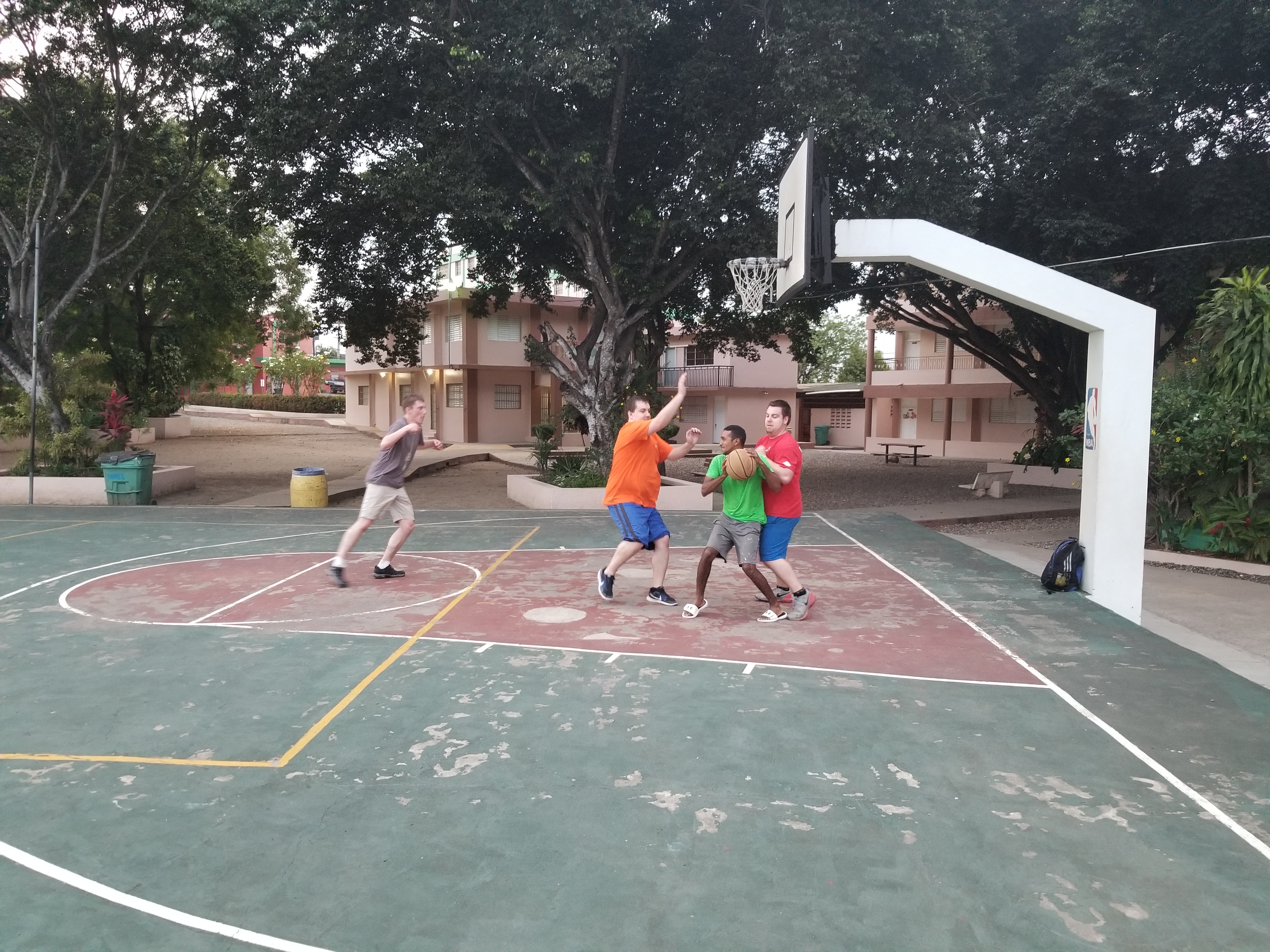 Because they weren’t tired enough, after baseball, some members of the team decided to play a game of 4-4 basketball, while some of the others watched.